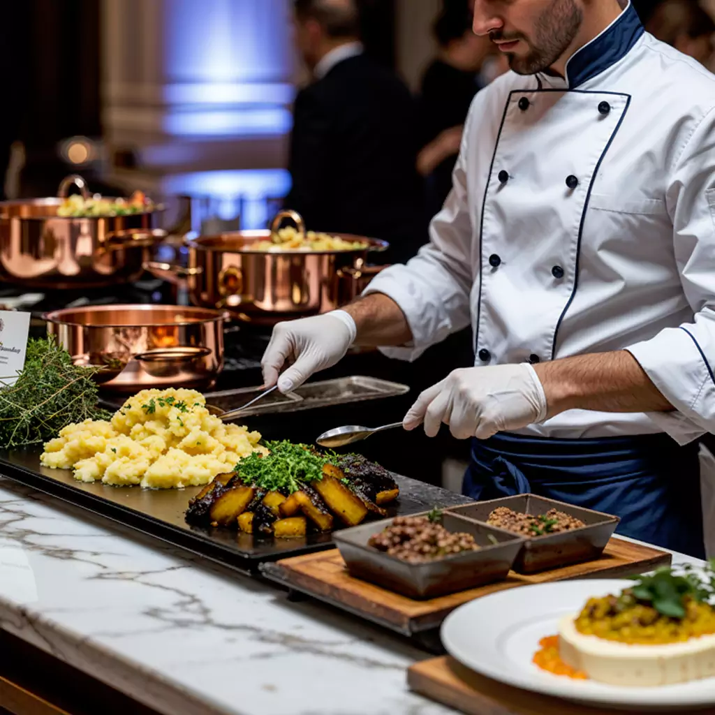 Our skilled chefs bring creativity and expertise to every dish, preparing fresh meals on-site at live stations for an interactive and memorable dining experience.